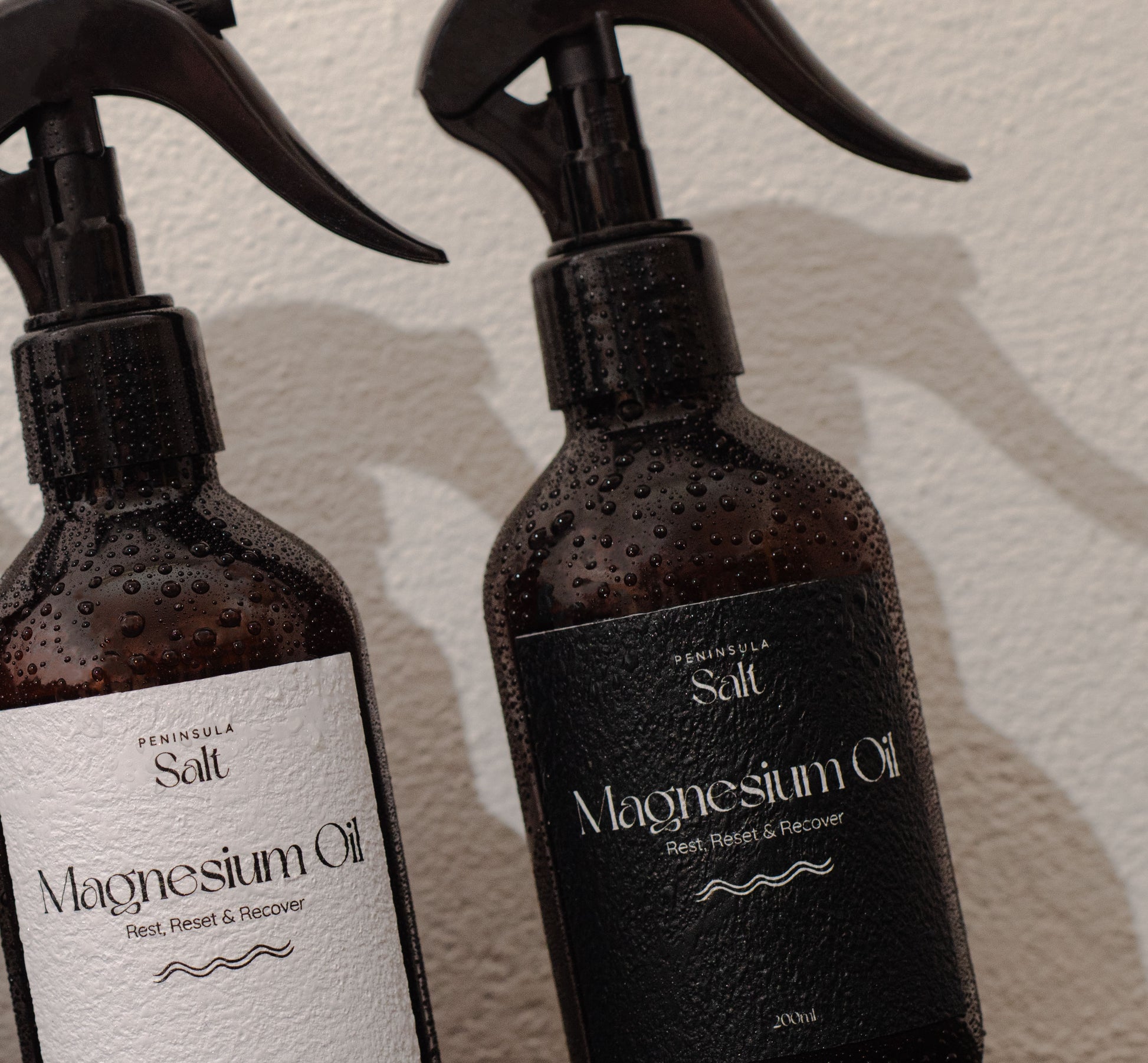Recover: Magnesium is a vital component in muscle function and recovery, helping alleviate muscle tension and soreness. Our magnesium oil aids muscle relaxation and promotes an accelerated restoration of your body’s natural balance.